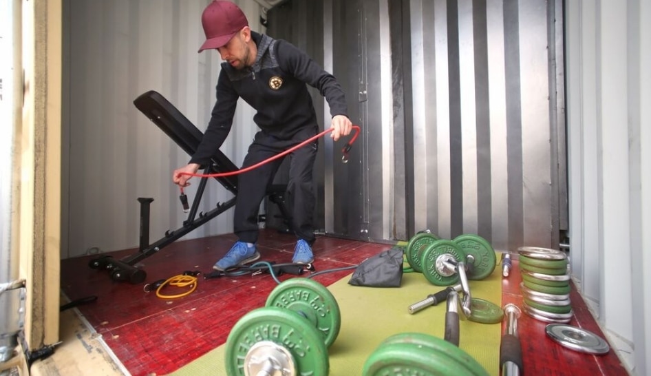 Gym-goer Creates Workout Space in a Storage Container