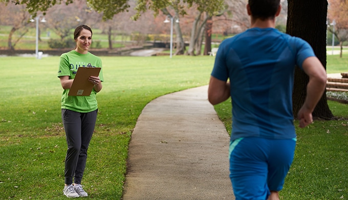 A worker takes notes as a client performs a “green” VO2 max test at Cooper Center.