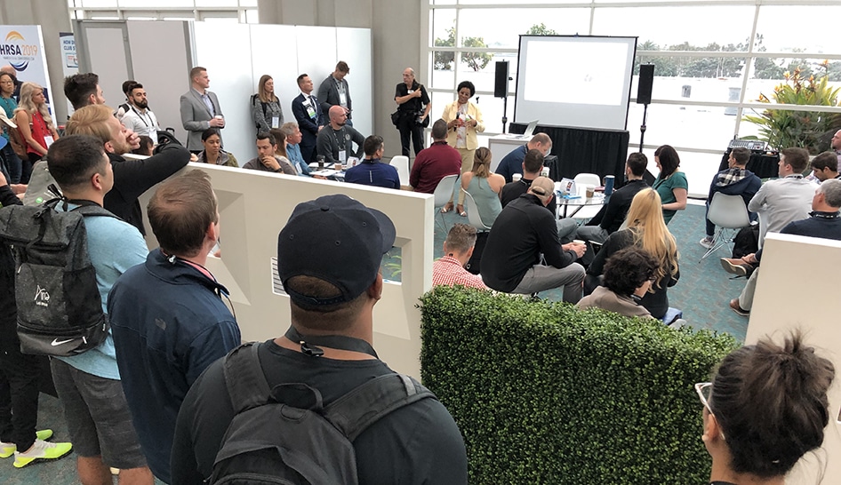 The convention kicked off Wednesday morning with the “Making Connections” Orientation, where about 100 first-time attendees—hailing from as far away as Denmark and Saudi Arabia—learned how to make the most out of their IHRSA 2019 experience. Attendees also networked with other club operators and IHRSA board members at the standing-room-only event.