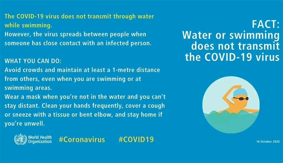 Note: Important further updates have been made to this article as more research and data becomes available around COVID-19, including the latest statement and infographic from the World Health Organization (WHO), which reiterates that swimming pools are safe. Head to the IHRSA Forum to get more information from IHRSA members and experts around the globe.